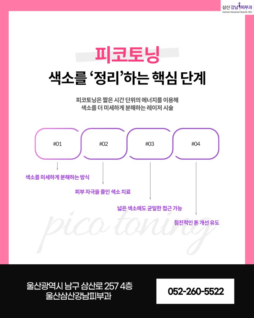 피코토닝은 짧은 시간 단위의 에너지를 이용해 색소를 더 미세하게 분해하는 레이저 시술입니다.