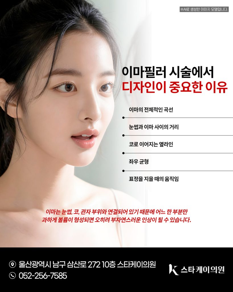 이마는 눈썹, 코, 관자 부위와 연결되어 있기 때문에 어느 한 부분만 과하게 볼륨이 형성되면 오히려 부자연스러운 인상이 될 수 있습니다.