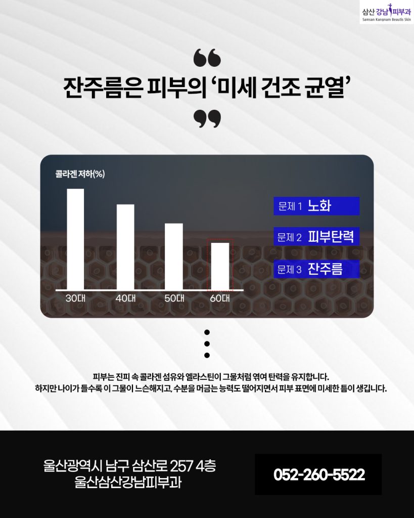 특히 눈가나 입가처럼 자주 울산남구피부과 움직이는 부위는 작은 잔주름이 쌓여 어느 순간 ‘인상선’처럼 보이기도 합니다. 하지만 대부분의 분들은 잔주름이 보이기 시작하면 곧바로 실리프팅이나 고강도 레이저처럼 ‘당기는 시술’을 먼저 떠올립니다.