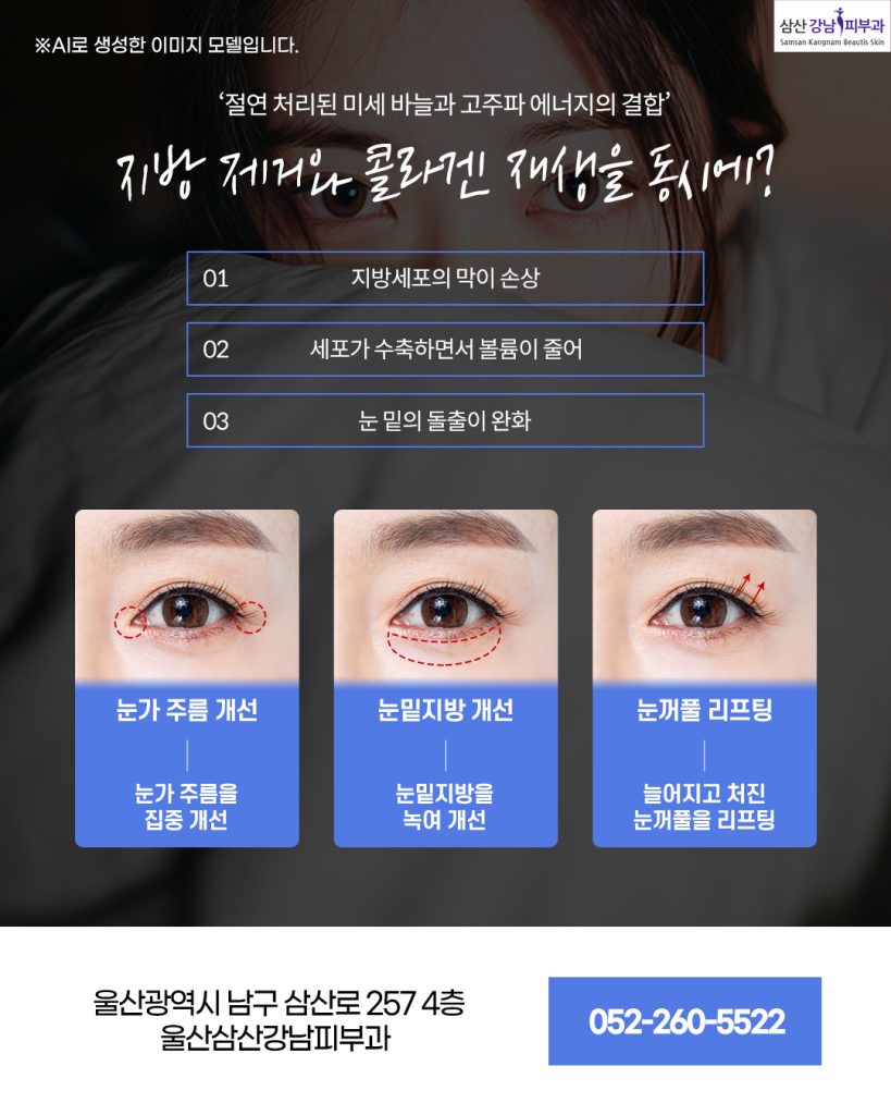 또한 지방을 한 번에 과도하게 제거하지 않고 필요한 부위에만 세밀하게 고주파를 전달하기 때문에 결과가 비교적 자연스러울 수 있으며 개인의 눈매 구조에 따라 과도한 교정으로 오히려 꺼져 보이거나, 비대칭이 생길 위험도 줄어듭니다.