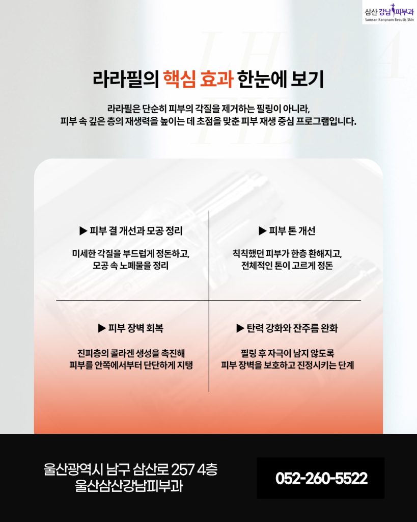 울산라라필은 단순한 필링을 넘어, 피부 재생의 출발점이 되는 관리입니다.