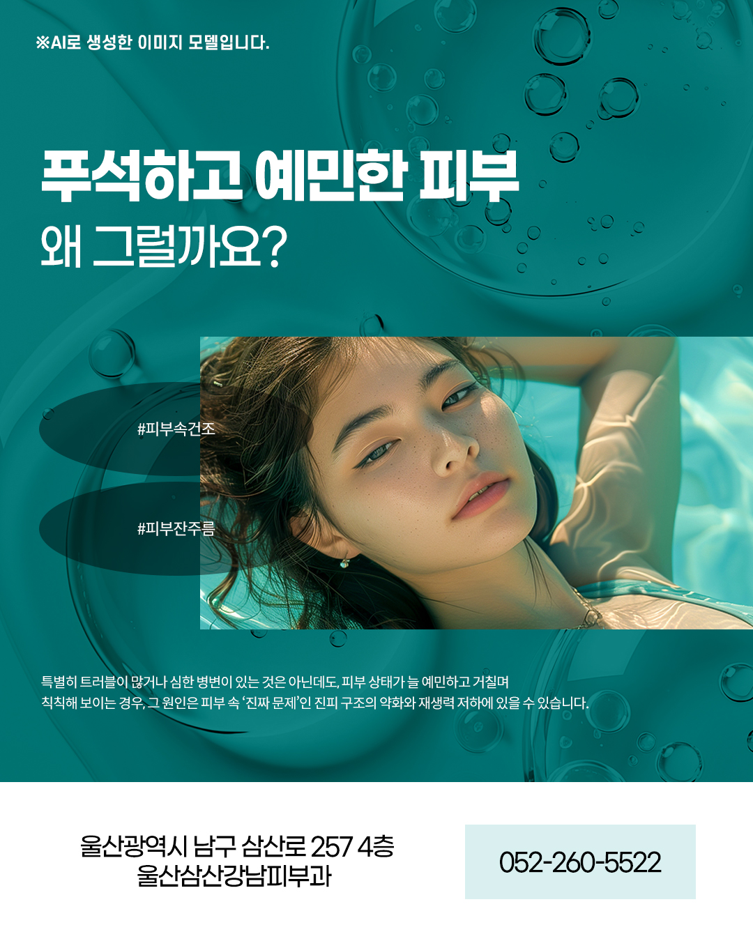 화장품을 바꿔봐도 피부가 금방 건조해지고, 잔주름이나 푸석함이 좀처럼 회복되지 않는다는 느낌! 한 번쯤 경험해보셨을 겁니다. 특별히 트러블이 많거나 심한 병변이 있는 것은 아닌데도 피부 상태가 늘 예민하고 거칠며 칙칙해 보이는 경우에는 원인이 피부 겉이 아닌 피부 속에 있을 수도 있습니다.