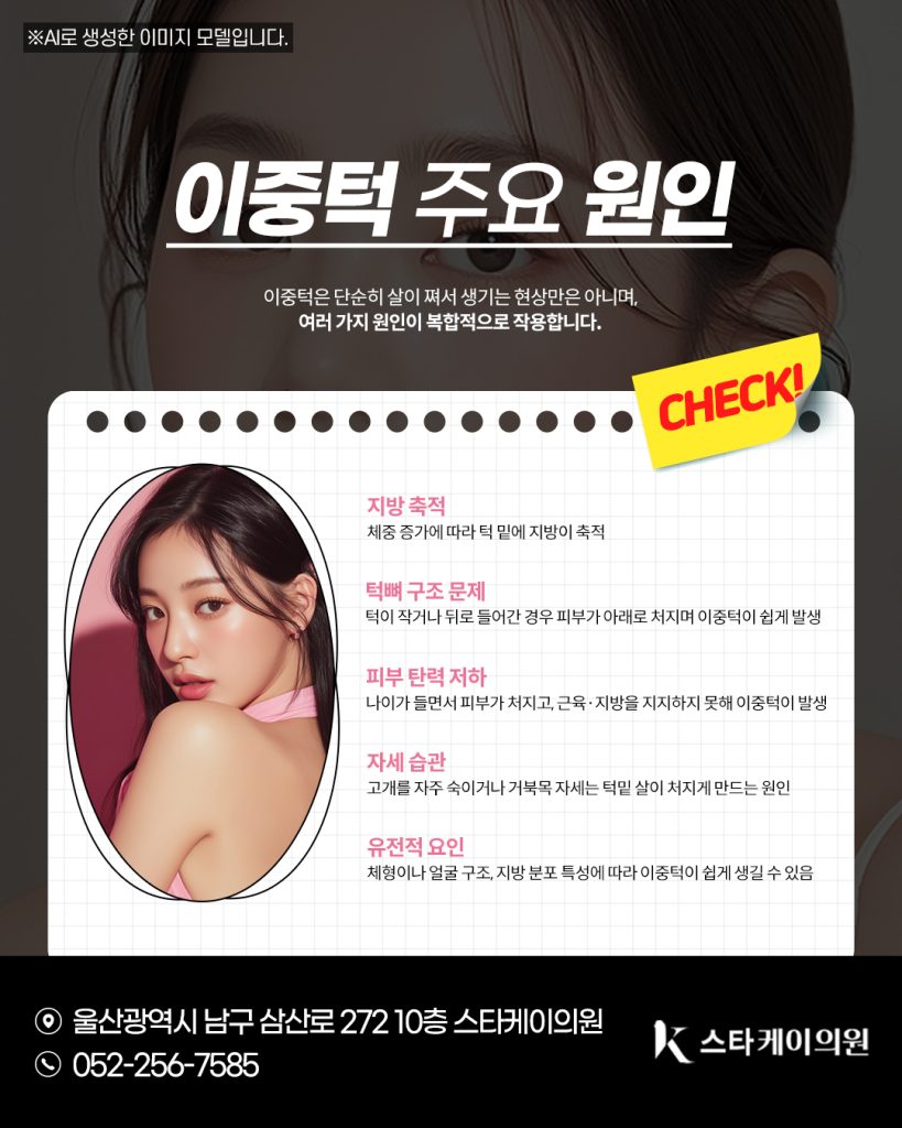 이중턱이 생기는 원인은 개인의 연령, 생활 습관, 유전적 요인에 따라 다양합니다.