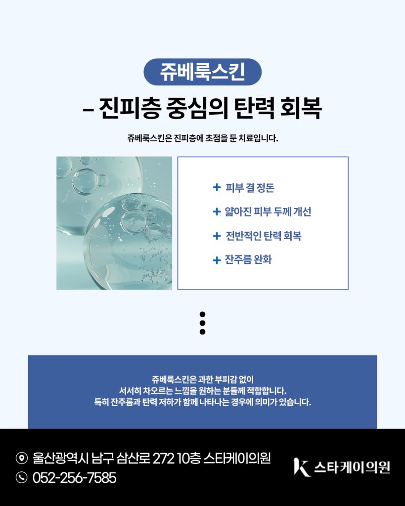 특히 울산삼산동쥬베룩 잔주름과 탄력 저하가 함께 나타나는 경우에 의미가 있습니다.