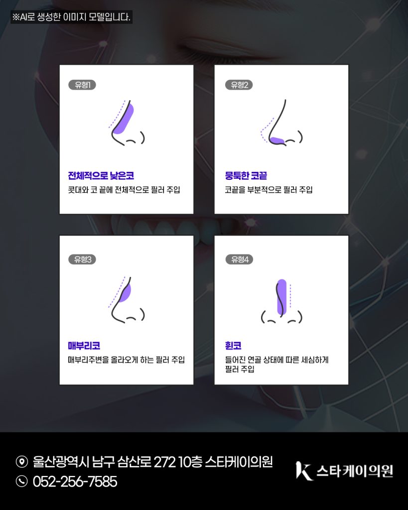 코끝이 퍼져 보이는 경우 → 코끝 중심부에 소량 주입해 라인을 모으고 세련된 인상을 만듭니다.