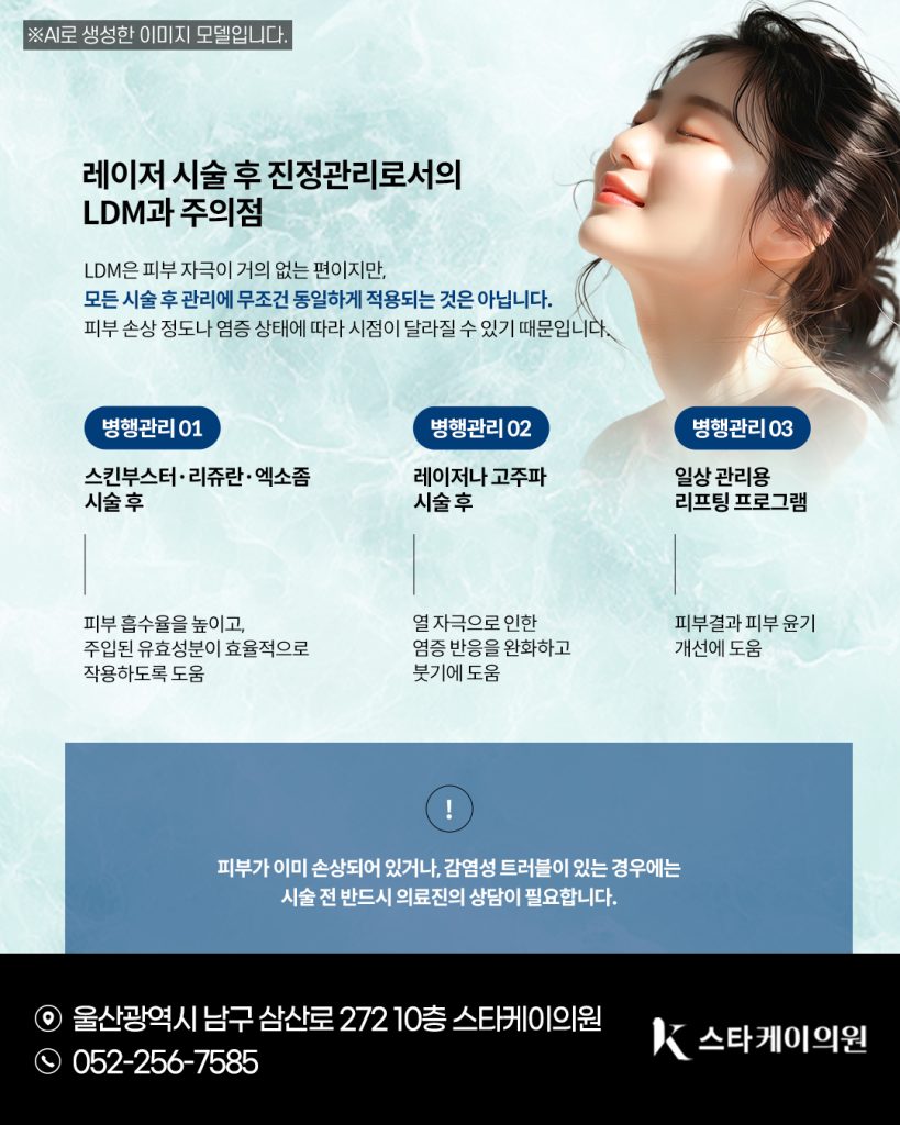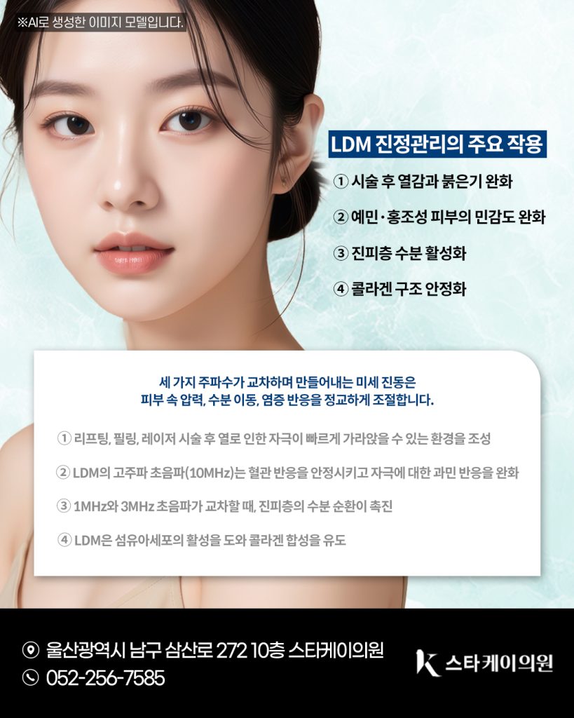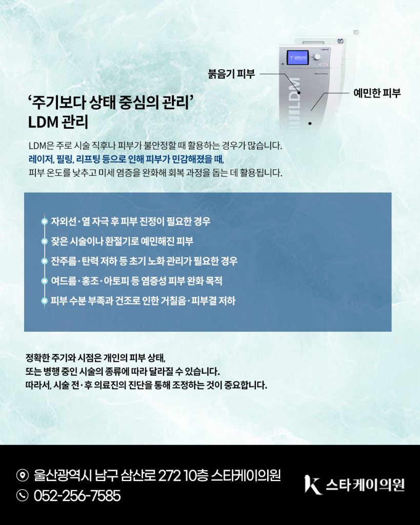 LDM은 피부 자극이 적고 회복 중심의 진정관리로, 사람들이 주로 울산삼산동피부과 시술 직후나 피부가 불안정할 때 활용하는 경우가 많습니다.