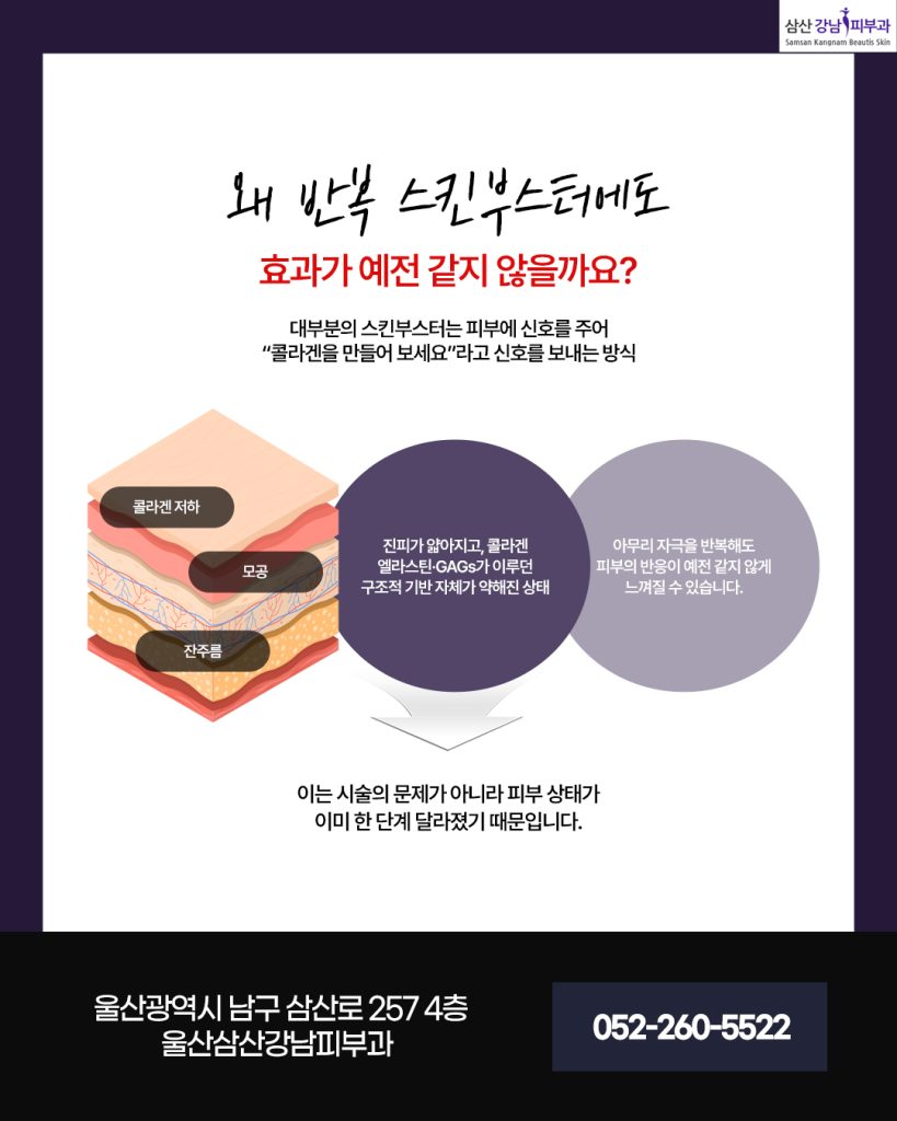 “예전엔 스킨부스터만 맞아도 피부가 확 달라졌는데 요즘은 효과가 빨리 사라지는 느낌이에요.”