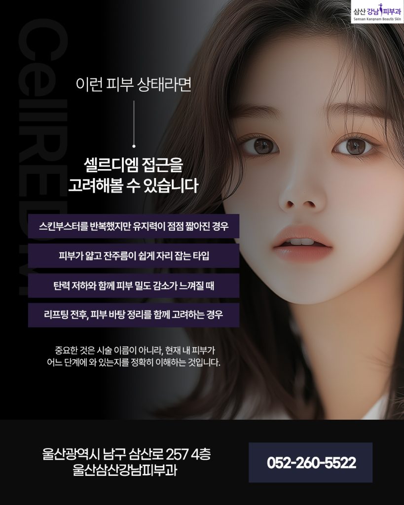 모든 피부에 같은 시술이 정답일 수는 없습니다. 다만 다음과 같은 경우라면 울산셀르디엠이 도움이 될 수 있습니다.