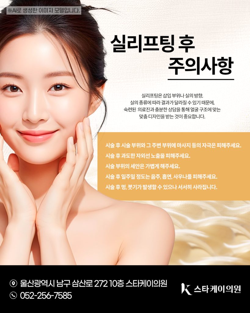 즉, 울산실리프팅은 시술 후 당김 효과로 얼굴선이 개선되고, 시간이 지나면서 피부 내부가 재생되며 자연스러운 탄력이 살아나는 이중 작용에 도움이 되는 방법입니다.