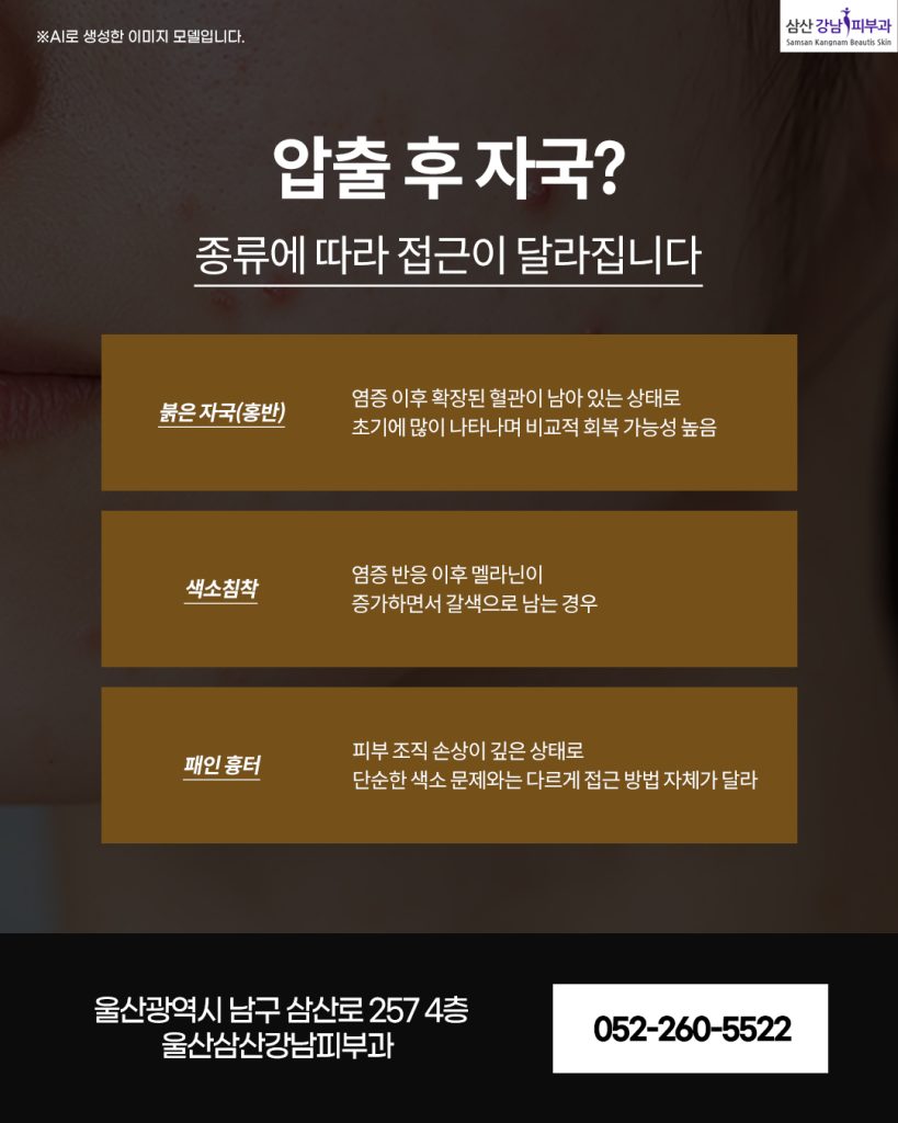 울산여드름압출 이후 남는 자국은 하나의 형태가 아니라 크게 세 가지로 나뉩니다.