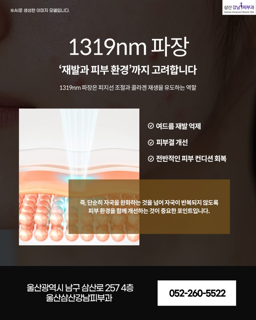 1319nm 파장은 피지선 조절과 콜라겐 재생을 유도하는 역할을 합니다.