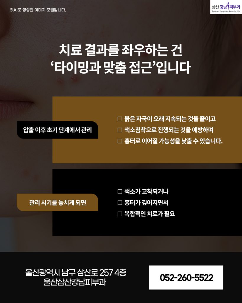 즉, 단순히 울산여드름압출 자국을 완화하는 것을 넘어 자국이 반복되지 않도록 피부 환경을 함께 개선하는 것이 중요한 포인트입니다.