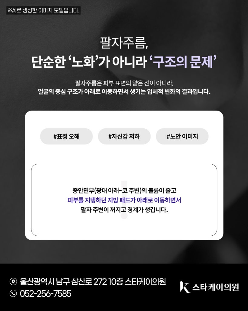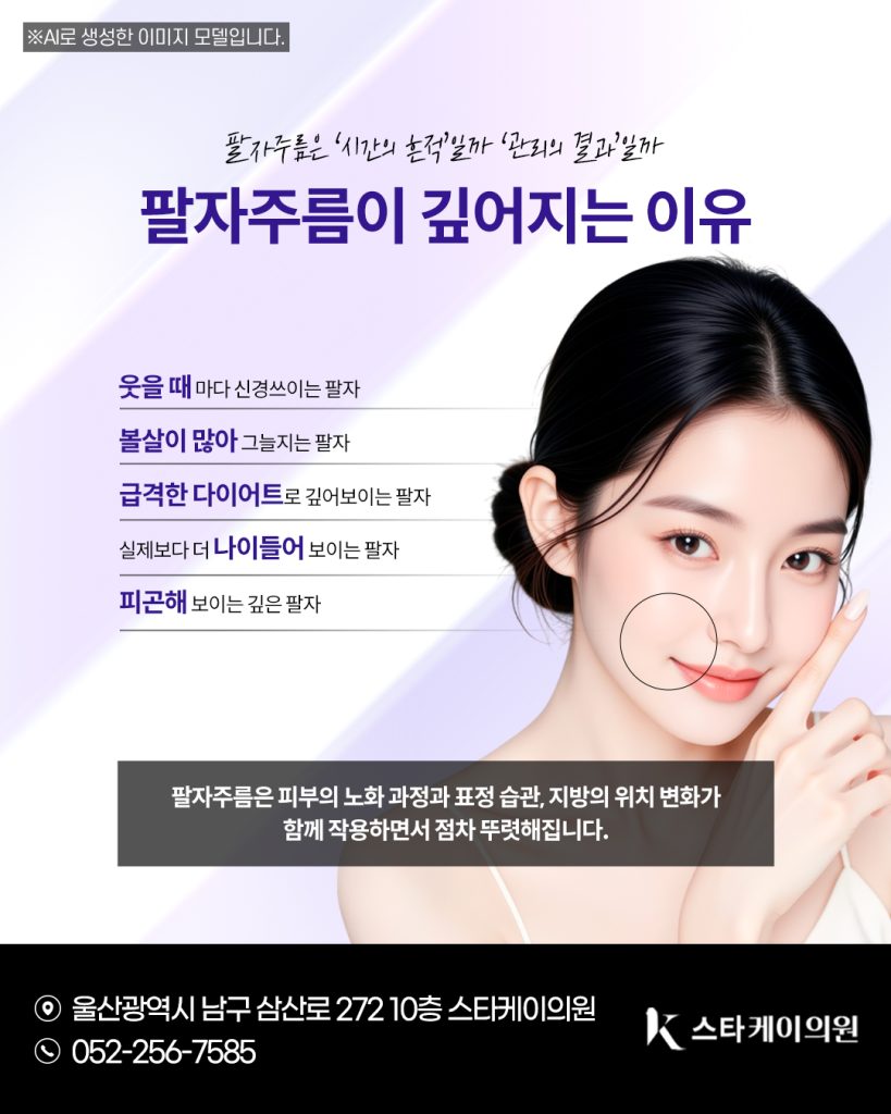 팔자주름은 노화 과정에서 나타나는 자연스러운 구조적 변화 중 하나입니다.