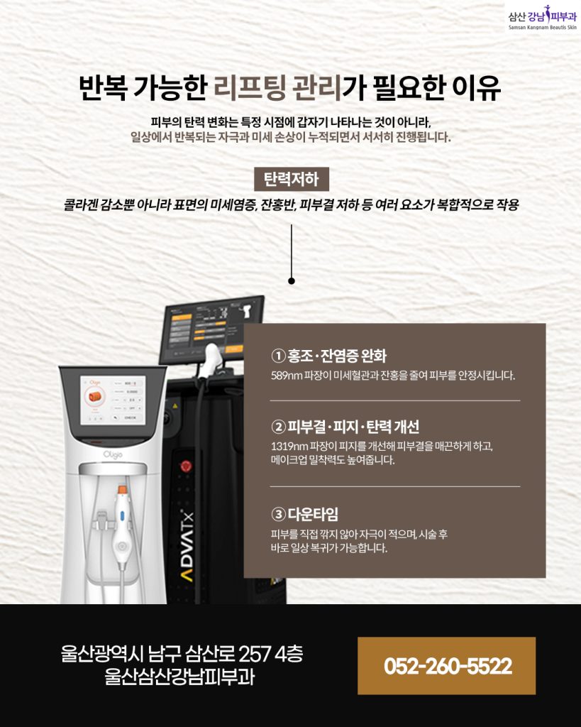올리지오 + ADVATx 조합이 주기적 울산피부과리프팅에 활용되는 이유가 바로 여기에 있습니다.