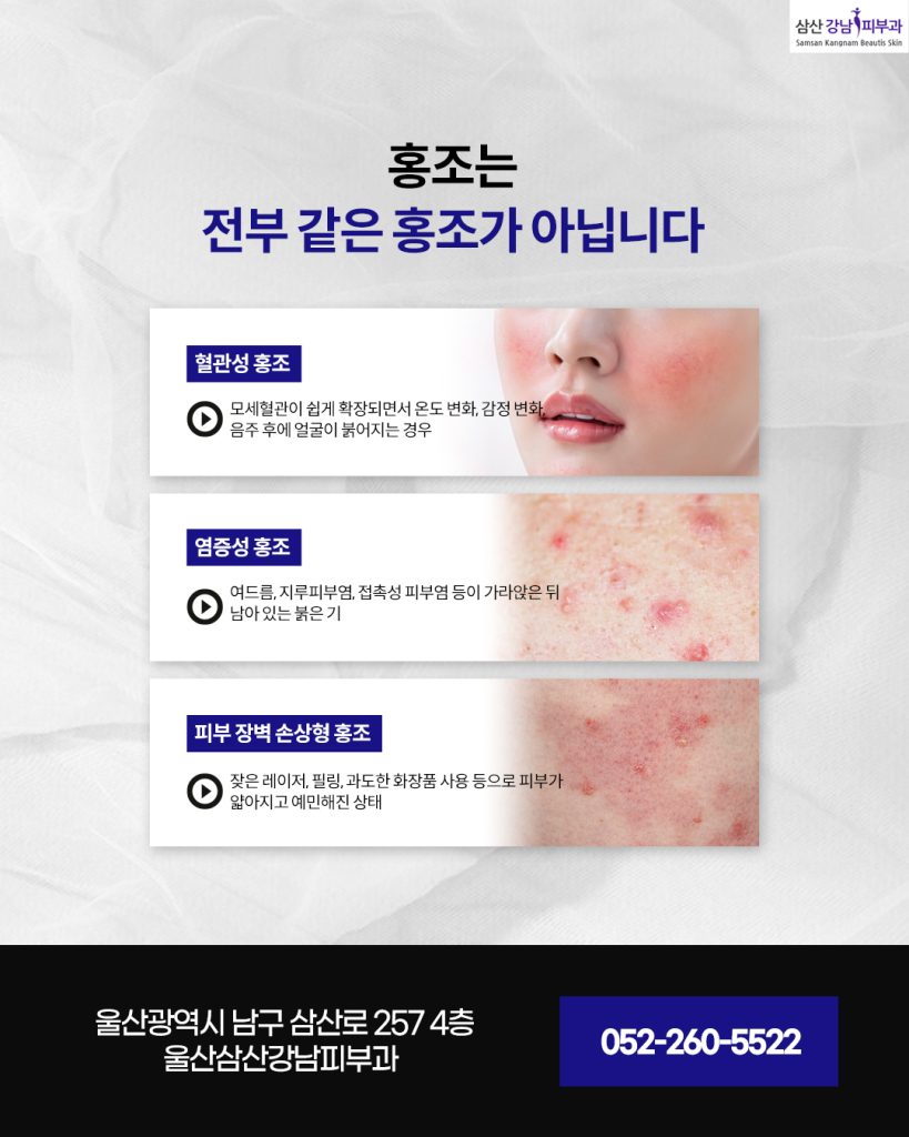 홍조는 겉으로 보기에는 모두 비슷해 보이지만, 울산삼산강남피부과 진료에서는 원인과 피부 상태에 따라 접근 방법이 완전히 달라지는 증상입니다.