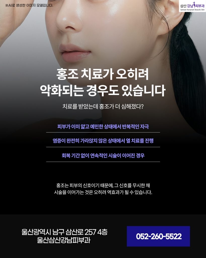 “울산홍조관리를 받았는데 홍조가 더 심해졌다”고 호소하시는 경우도 있습니다.