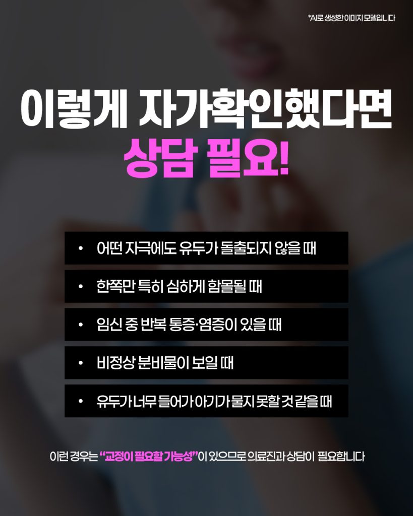 구조적 함몰이 있는 경우 변화가 거의 없이 그대로 남아 수유 초기 어려움을 겪는 경우가 많습니다.