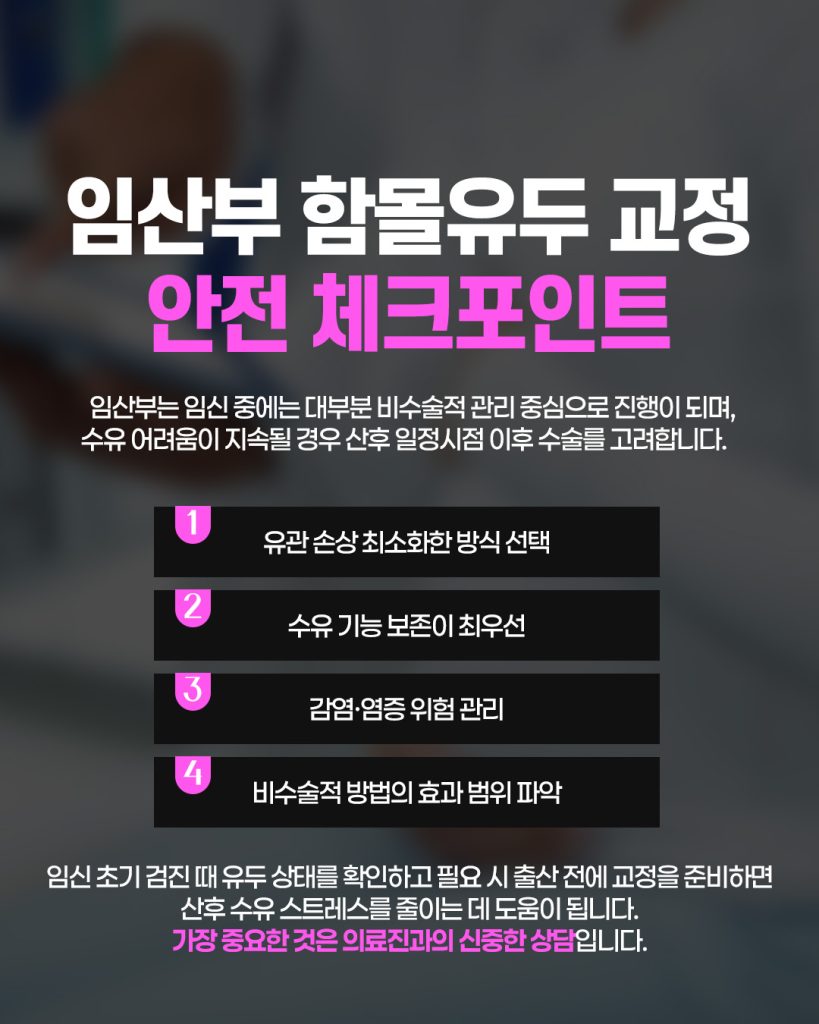임산부에게 함몰유두 교정은 단순 외형이 아니라 수유 계획과 직접 연결되는 기능적 의미가 큽니다.