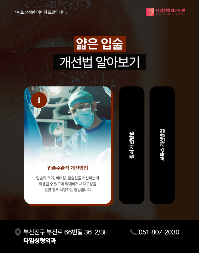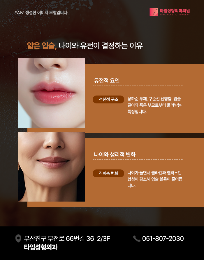 입술의 상순과 하순의 두께, 형태, 윤곽, 대칭성은 얼굴 전체의 조화와 연관되어 있으며 나이와 함께 변화하는 노화 과정 속에서 그 중요성이 더욱 부각됩니다. 얇은 입술은 이러한 구조적 특성 중에서도 흔히 관찰되는 형태적 특징으로 상순과 하순의 상대적 두께가 적고 부피가 작으며 윤곽선이 뚜렷하지 않은 형태를 말합니다.
