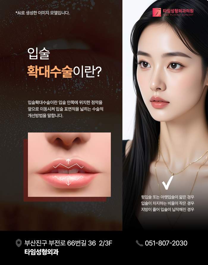 입술 확대수술은 일반적으로 구강 점막과 주변 연부조직을 전방으로 이동시키는 방법을 말합니다. 이를 통해 입술 외부로 드러나는 표면적을 확대하고 상하순의 두께를 교정할 수 있습니다. 수술과정에서는 혈관과 신경 분포, 구강점막 두께, 주변 근육 구조를 분석하여 방향과 절개 깊이 등을 결정해야 합니다.