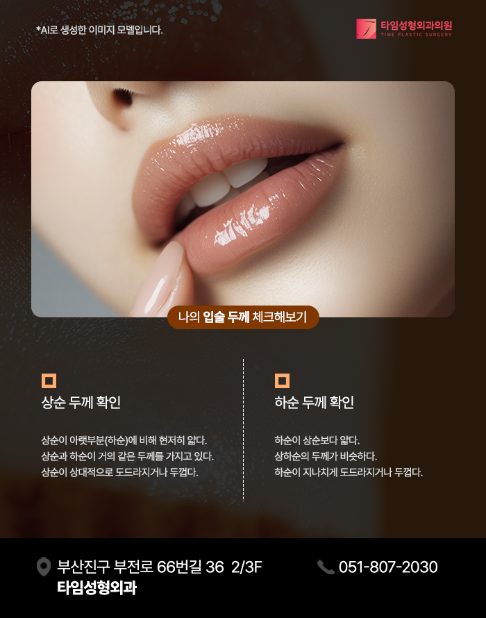 윗 입술이 지나치게 얇은 편에 속한다면 비례감이 깨져보일 수 있고 미소가 밋밋하거나 표정 전달력이 감소할 수 있습니다. 반대로 상순이 과도하게 두껍다면 부담스러운 인상 혹은 비율을 불균형해 보일 수 있습니다.