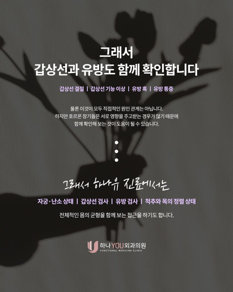 특히 갑상선, 유방, 그리고 목과 척추 상태까지 함께 살펴보는 이유가 있습니다.