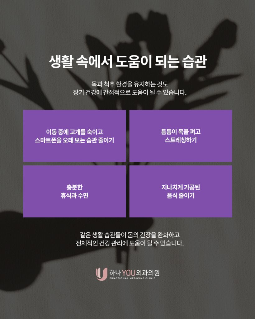 목과 척추 환경을 유지하는 것도 장기 건강에 간접적으로 도움이 될 수 있습니다.