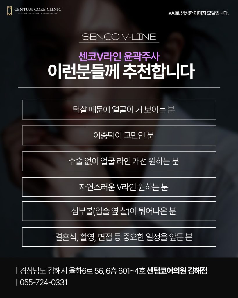 윤곽주사는 수술 없이도 얼굴 특정 부위 지방을 정리해 장유율하윤곽주사를 통해 V라인 효과를 기대할 수 있습니다.