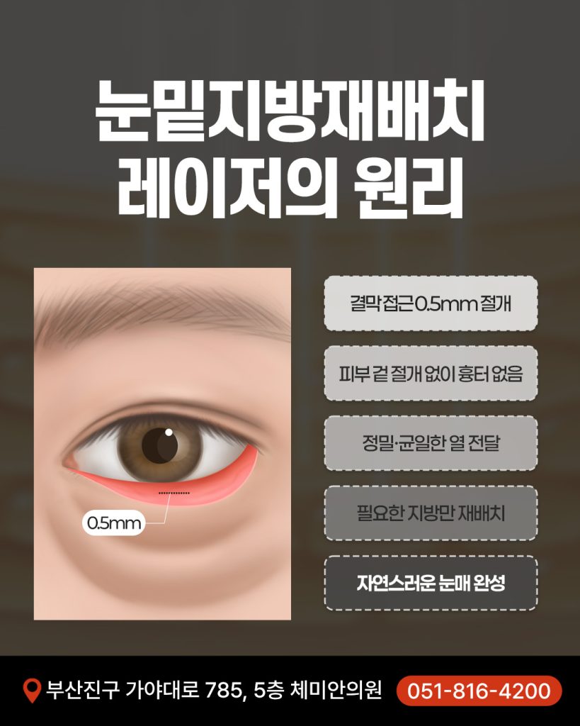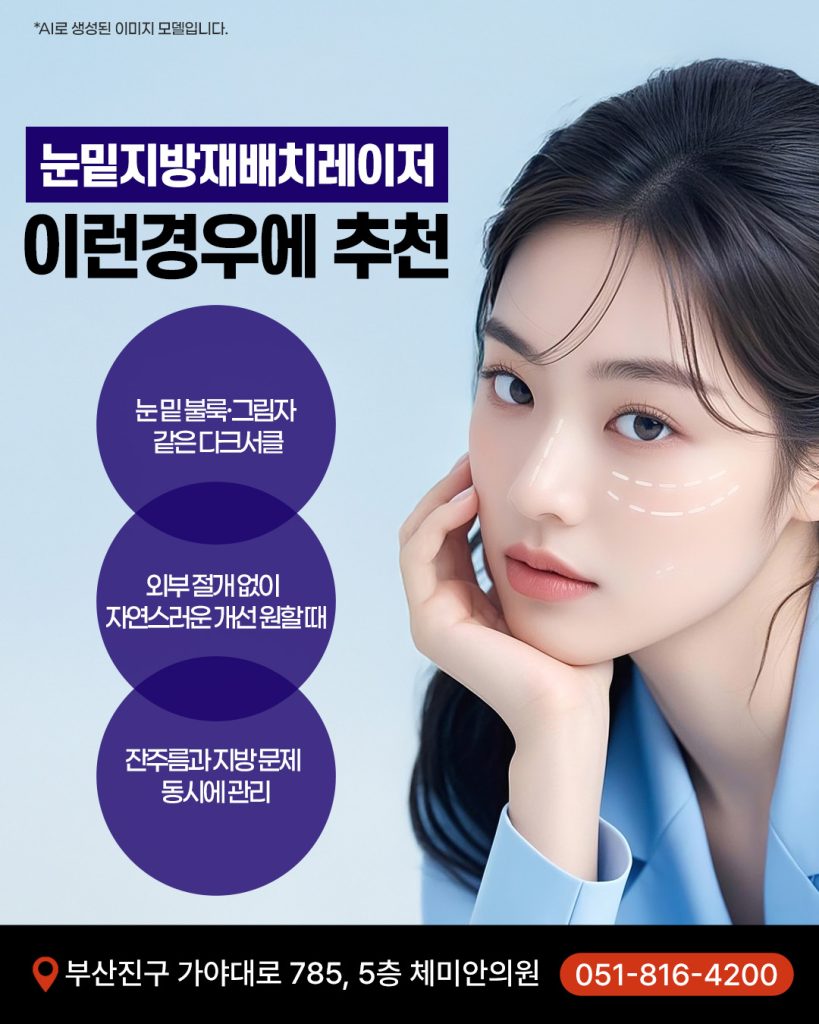 부산눈밑지방배재배치레이저는 흉터 부담 없이 자연스러운 눈가 변화를 원하는 분들이 많이 찾는 방법이지만,