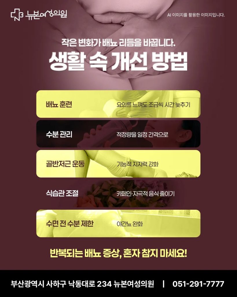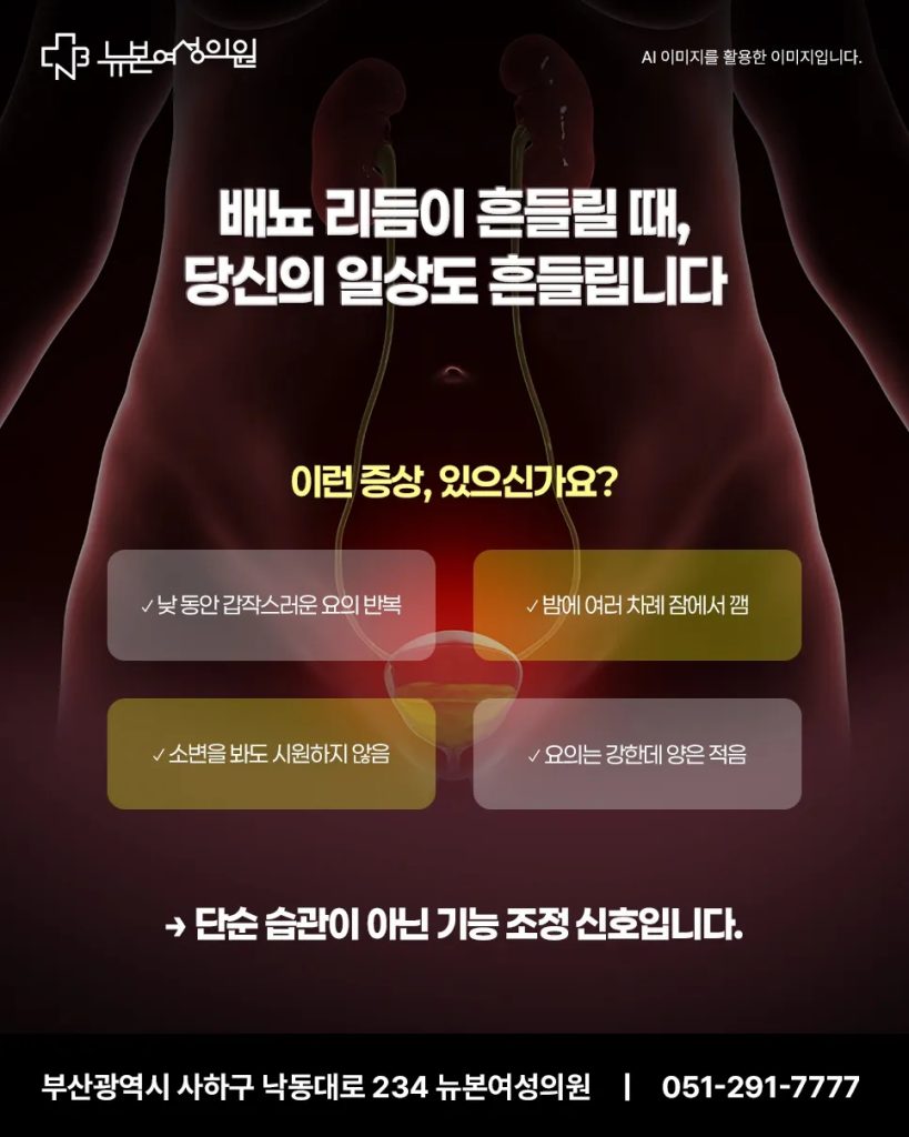 우리 몸의 기능은 균형을 이룰 때 큰 불편 없이 유지되지만, 작은 흐트러짐만으로도 생활 전반에 영향을 미칠 수 있습니다. 특히 배뇨는 의식적 조절과 무의식적 반응이 동시에 작용하는 복합 체계입니다. 낮 동안 갑작스러운 요의가 반복되거나, 밤에 여러 차례 잠에서 깬다면 이는 단순한 습관이 아니라 기능 조정 능력이 흔들리고 있다는 신호일 수 있습니다. 하단방광염 뉴본여성의원에서는 이러한 증상을 단순 불편으로 보지 않고, 건강 전반과 연결해 진단하고 관리합니다.