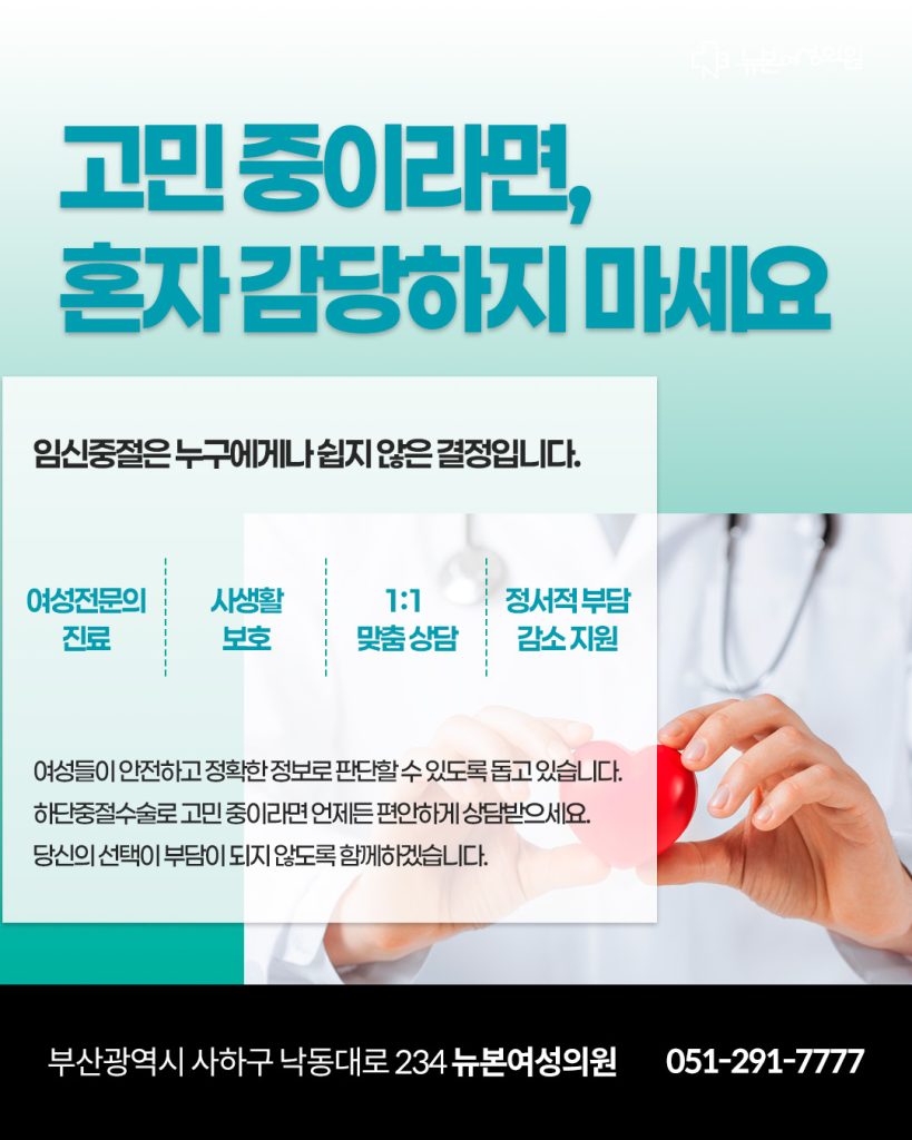 뉴본여성의원은 하단중절수술 문의로 내원하는 여성들이 안전하게,