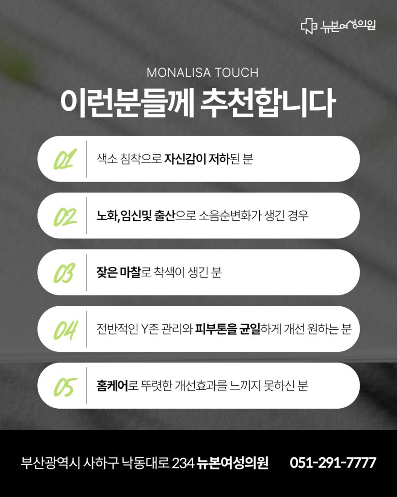 모나리자터치는 절개 없이 비침습적 방식으로 진행되어 빠른 일상복귀를 원하는 직장인 분들은 많은 관심을 가지고 있습니다.