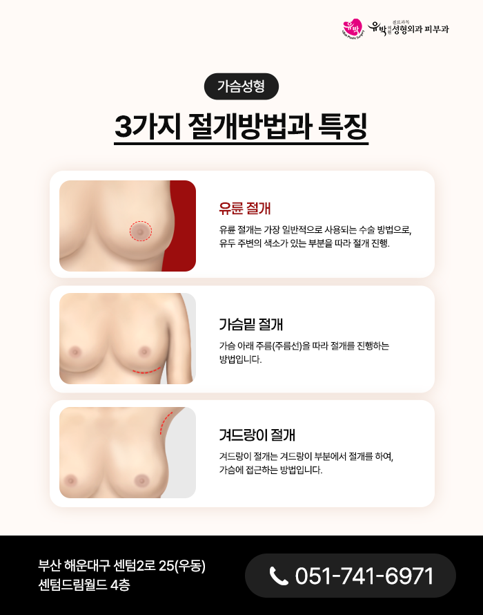 🔴절개 위치 별 가슴성형 접근방법 및 특징