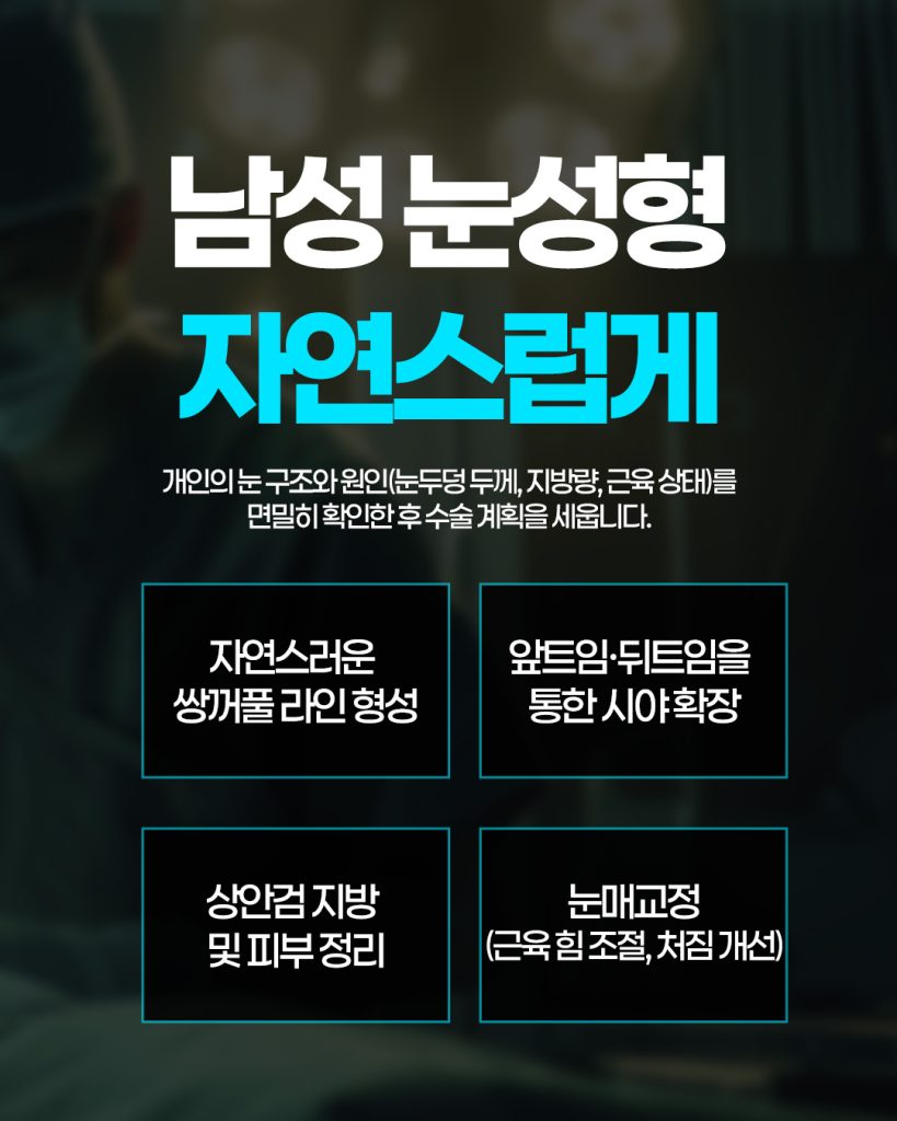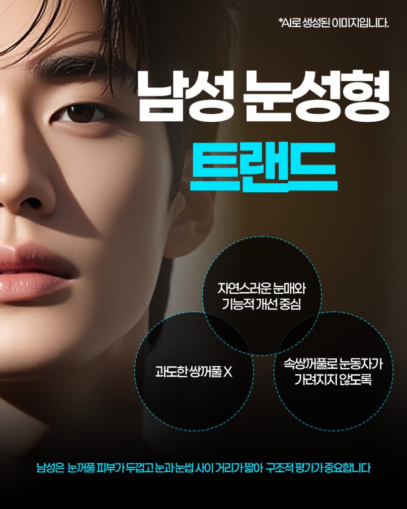 남성 눈 성형은 자연스러운 눈매와 기능적 개선이 중심입니다.