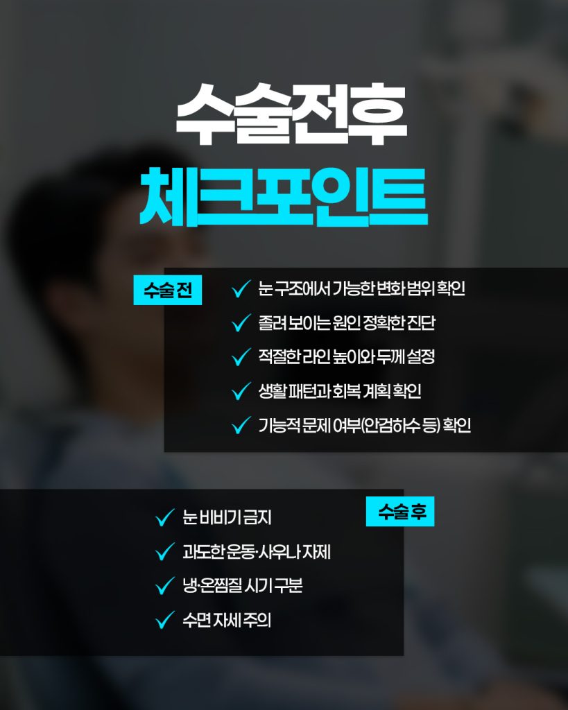 이는 과장이나 인위적인 변화 없이,본인의 얼굴과 눈 구조에 맞는 안정적인 결과를 기대할 수 있도록 합니다.