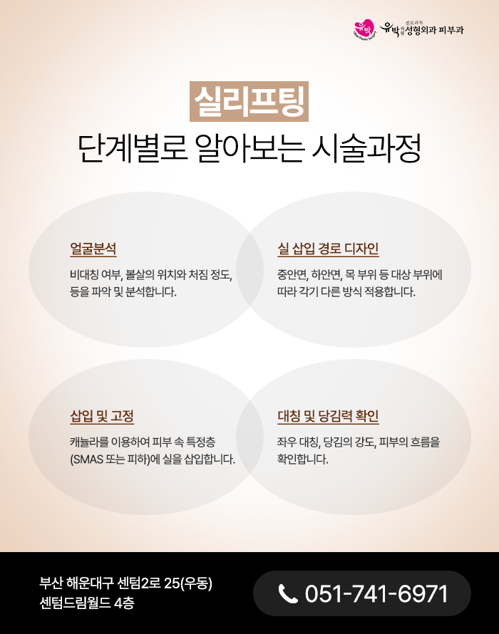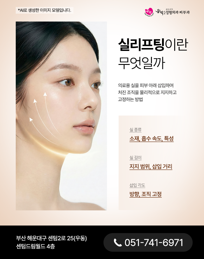 해운대실리프팅은 의료용 실을 피부 아래에 삽입하여 처진 연부조직을 물리적으로 지지하고 고정하는 방식의 리프팅 방법으로 정의할 수 있습니다. 단순히 피부를 당기는 것이 아니라 특정 층을 기준으로 조직을 지지하고 재배치하는데 목적을 둡니다. 실의 종류는 주로 소재, 흡수속도, 그리고 물리적 특성에 따라 구분됩니다.