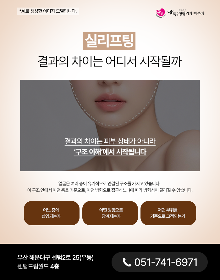 즉, 어느 층을 기준으로 접근하느냐에 따라 당겨지는 조직의 범위와 깊이가 달라지며, 결과적으로 나타나는 리프팅의 양상 또한 달라질 수 있습니다.
