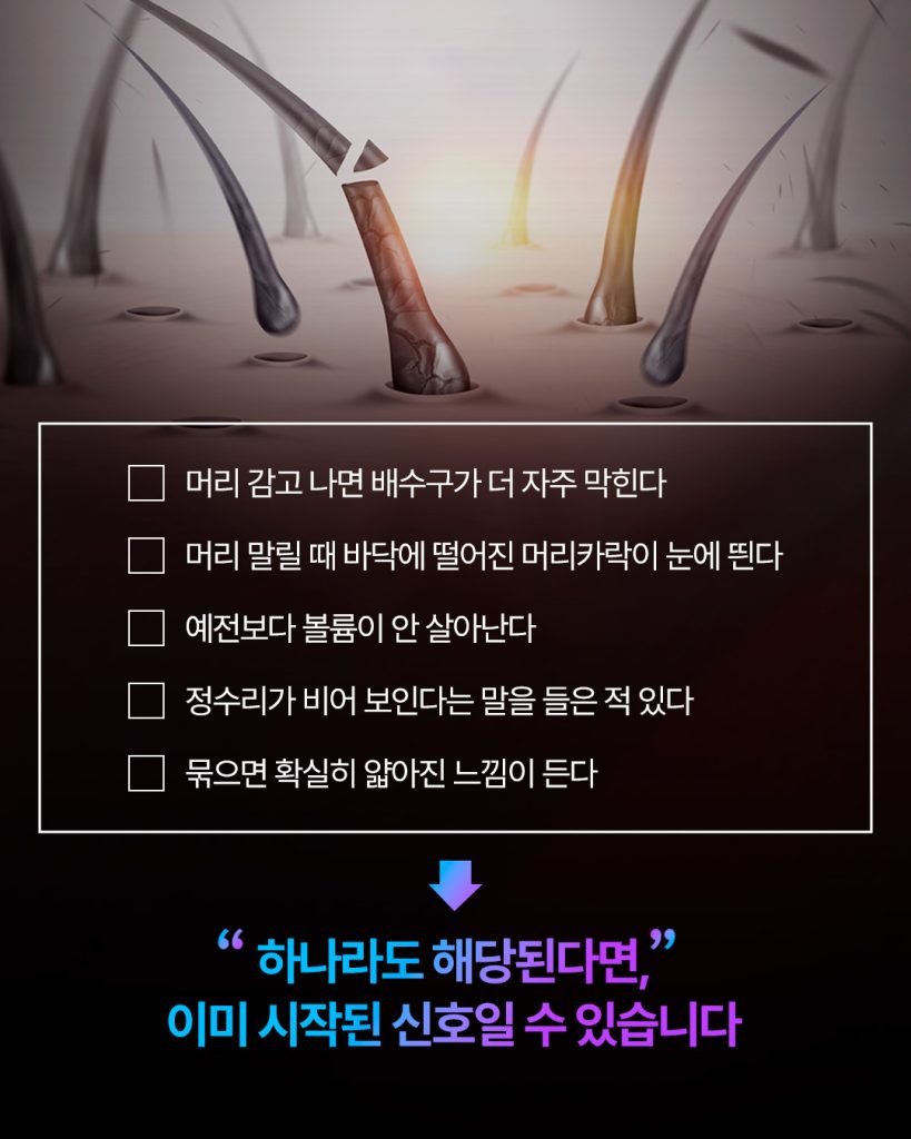 지금 내 모발 상태를 제대로 파악하는 것부터 차분히 시작해보시는 것이 좋습니다.