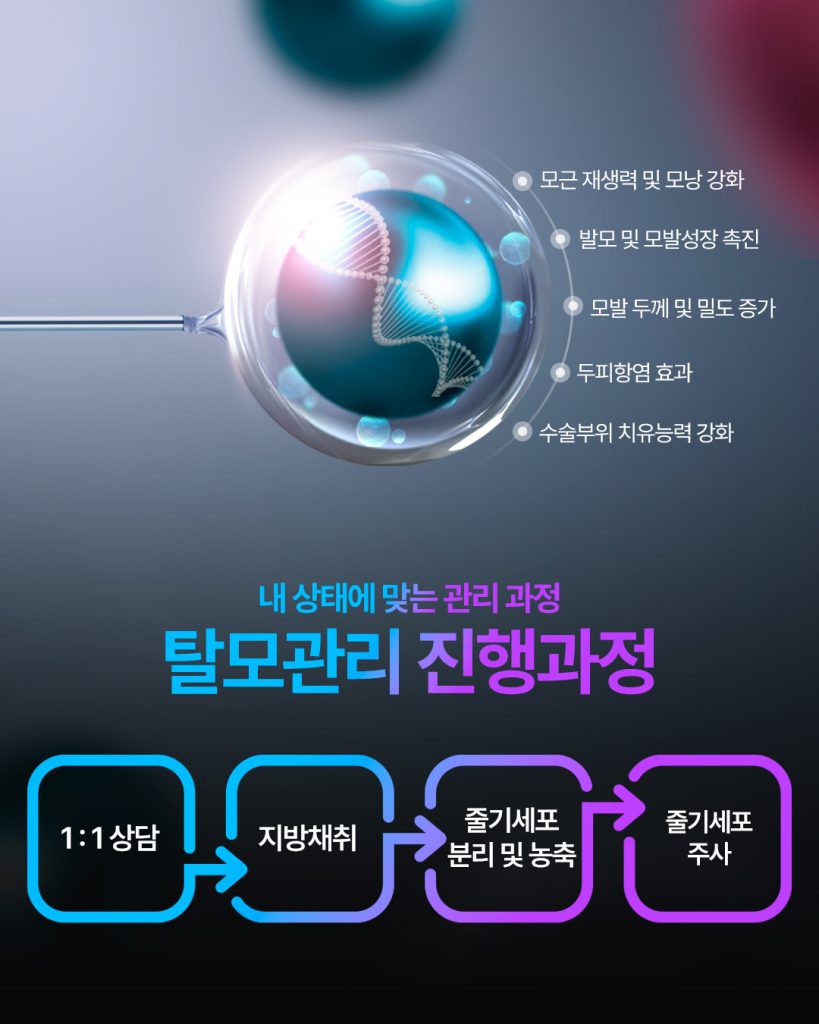 탈모줄기세포치료는 자신의 지방에서 추출한 자가세포를 활용해