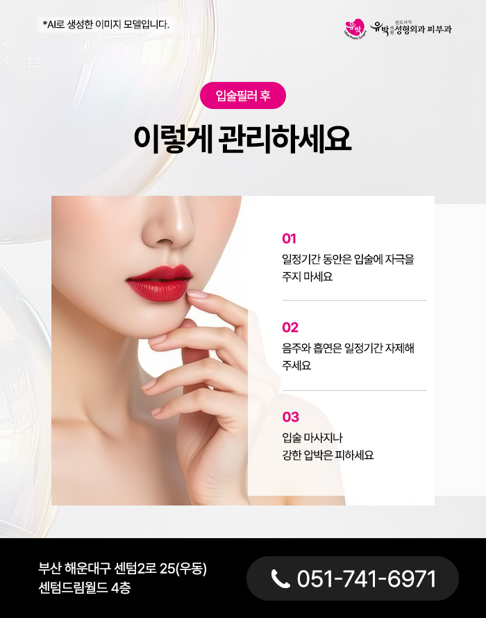 또한 입술 부위에 대한 마사지나 강한 압박은 피해야 합니다. 외부 압력에 민감하게 반응할 수 있으며, 반복적인 자극이나 압박은 해운대입술필러의 분포 상태에 영향을 줄 수 있습니다.