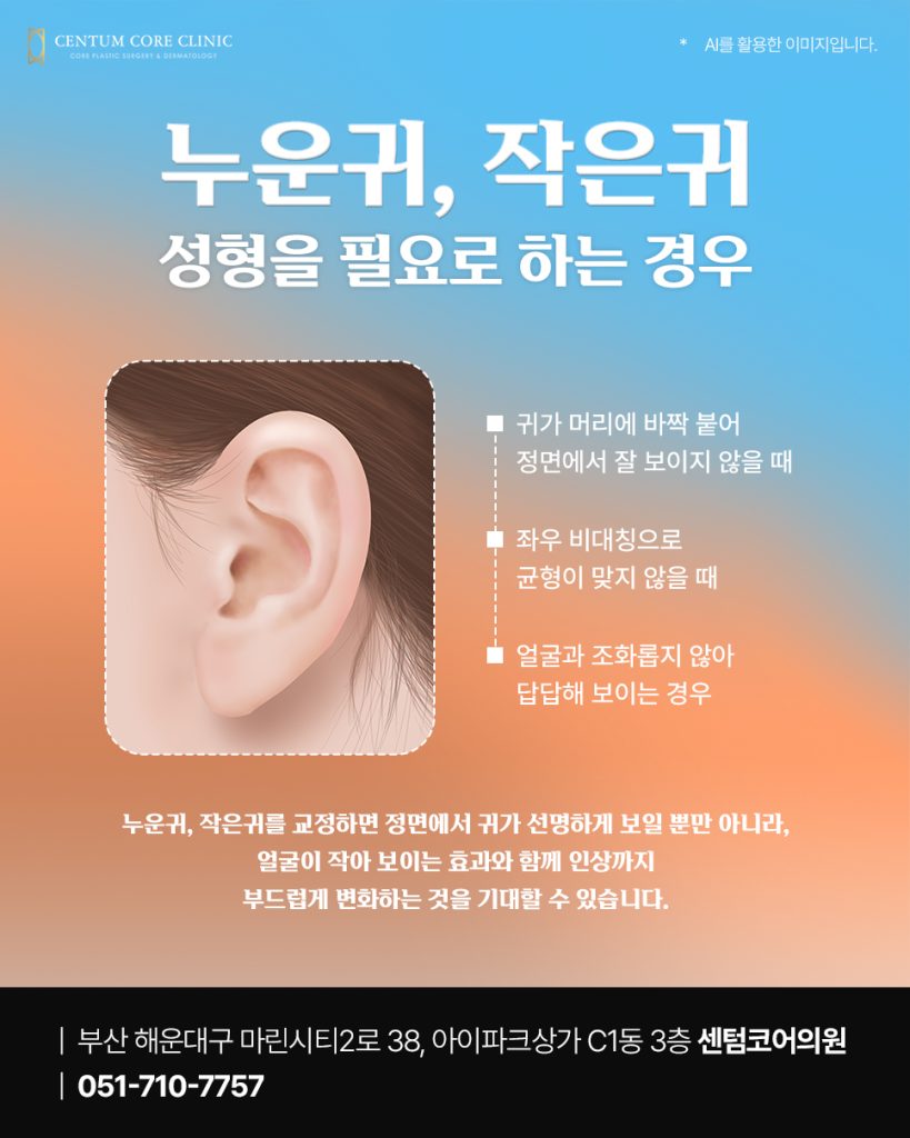 해운대센텀코어의원은 실력과 풍부한 경험을 바탕으로, 본래 내 귀처럼 자연스럽고 균형 잡힌 결과를 제공합니다. 단순히 외형만 바꾸는 것이 아니라, 얼굴 전체의 조화를 고려해 맞춤 설계를 진행하므로 안심하고 상담 받아보시길 권해드립니다.