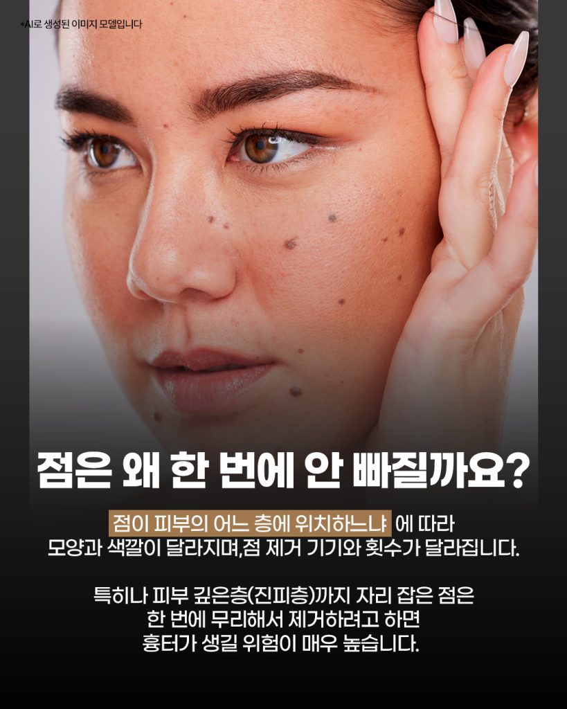 그래서 깊은 점의 경우에는 피부 재생 주기에 맞춰 나누어 시술하는 방식이 진행됩니다.