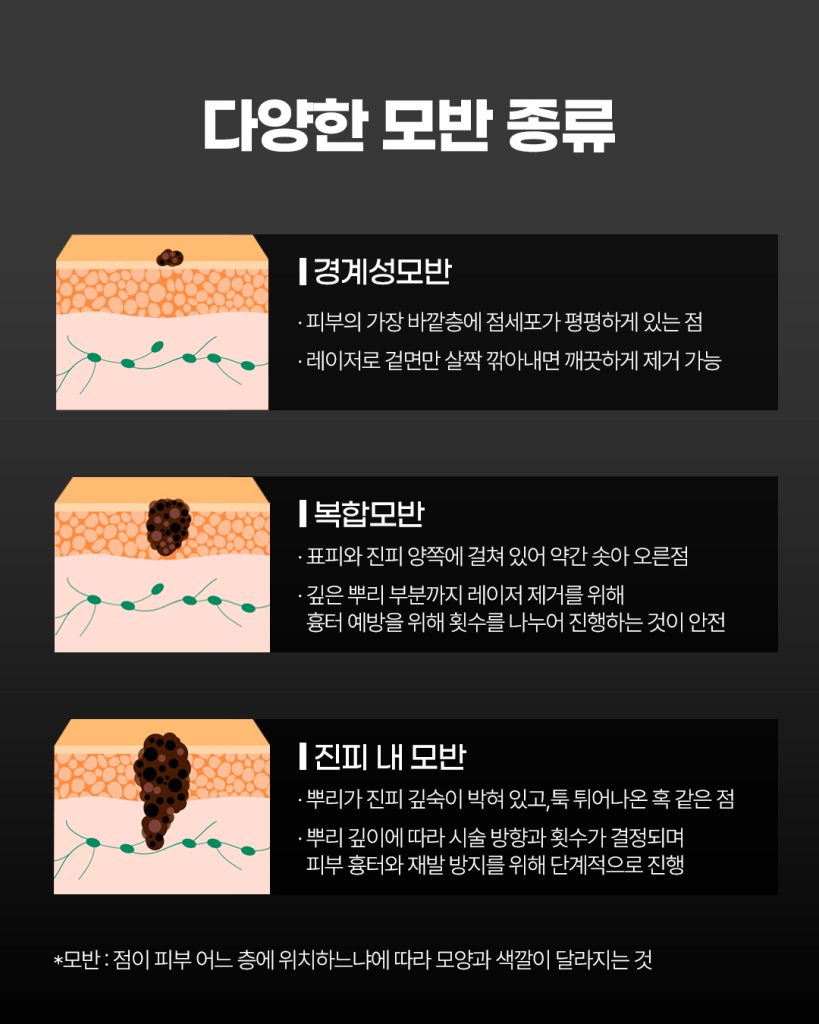 ✅표피에 가까운 경계모반은 비교적 얕은 층에 위치해 점제거가 수월한 편에 속합니다.