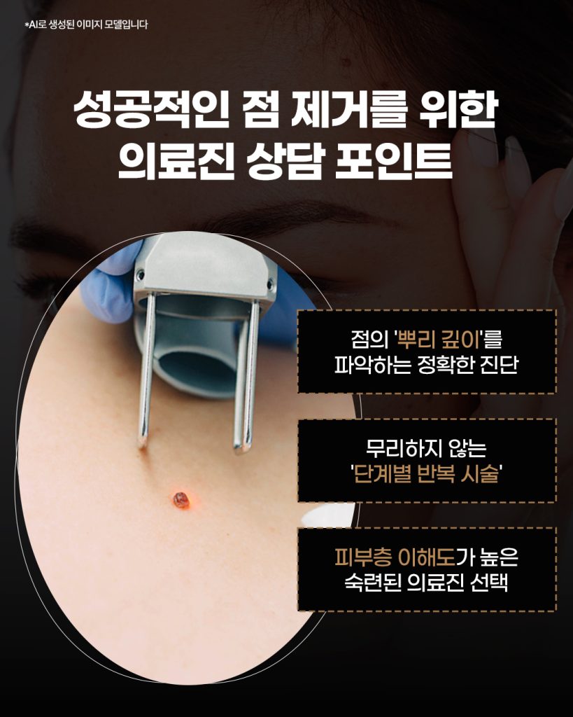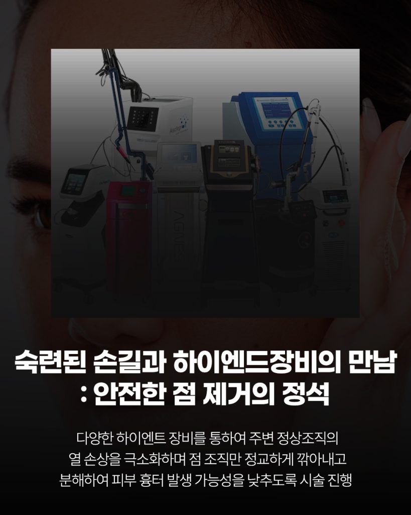 따라서 점제거는 단순히 없애는 것이 아니라,피부 상태를 고려해 어떻게 제거할지를 계획하는 과정이 중요합니다.