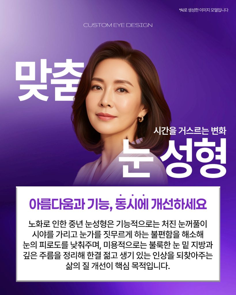중년 눈성형은 단순한 외형 개선이 아닌 기능적인 부분까지 함께 고려되는 경우가 많습니다.