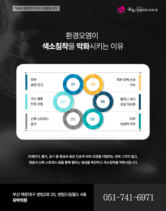 피부는 원래 손상된 조직을 회복하고 멜라닌을 일정 수준 유지하며 균형을 잡는 재생능력을 갖고 있지만, 반복적이고 지속적인 환경적 스트레스는 이러한 과정을 방해합니다. 장기간 오염물질에 노출되면 피부 속 활성산소가 증가하고 산화스트레스가 쌓이며 세포 손상과 염증이 반복적으로 발생합니다. 이러한 과정은 기존 기미나 잡티가 쉽게 사라지지않고 오히려 점점 악화되는 악순환을 만들게 될 수 있습니다.