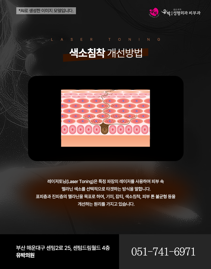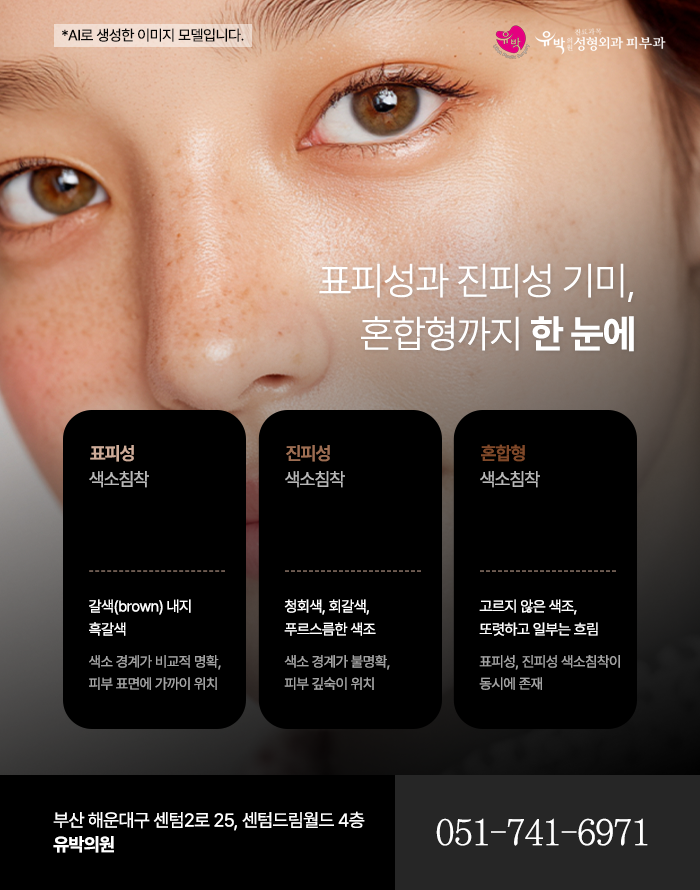 피부 깊은 층에 위치한 색소침착은 멜라닌이 진피 내 섬유아세포 혹은 식세포에 의해 포식된 상태로 존재하는 것이 특징입니다. 표피성보다 훨씬 깊은 층에서 발생하므로 색조는 회갈색 또는 청회색을 띠며, 경계가 흐릿하고 퍼져보입니다. 이러한 현상은 반복적인 염증, 미세손상, 호르몬 불균형, 혹은 장기간의 자외선 노출로 인한 멜라닌 세포의 과활성에 의해 유발됩니다.