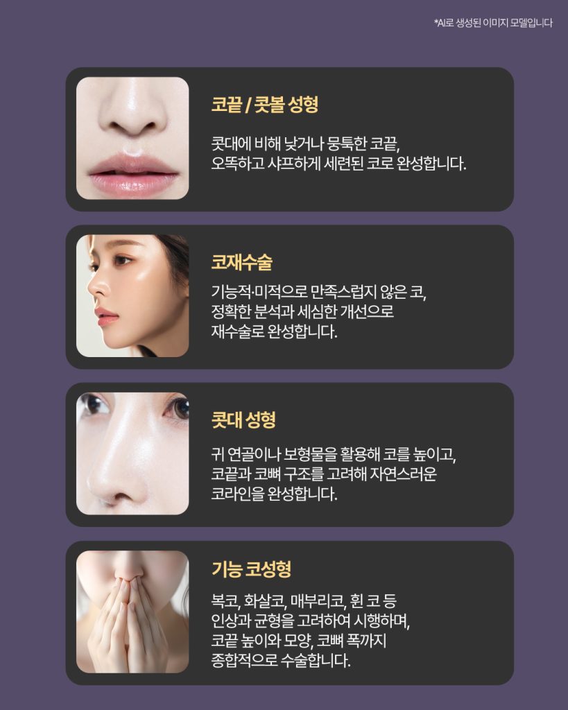 따라서 코높이,코끝 모양,코 길이뿐 아니라 얼굴 비율까지 함께 고려해야 전체적인 균형이 맞습니다.