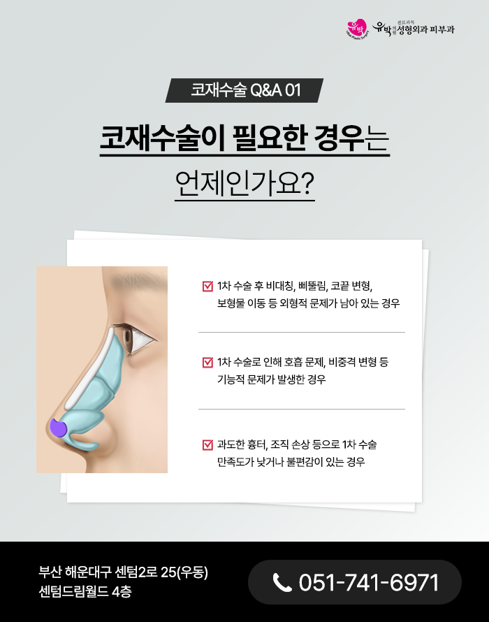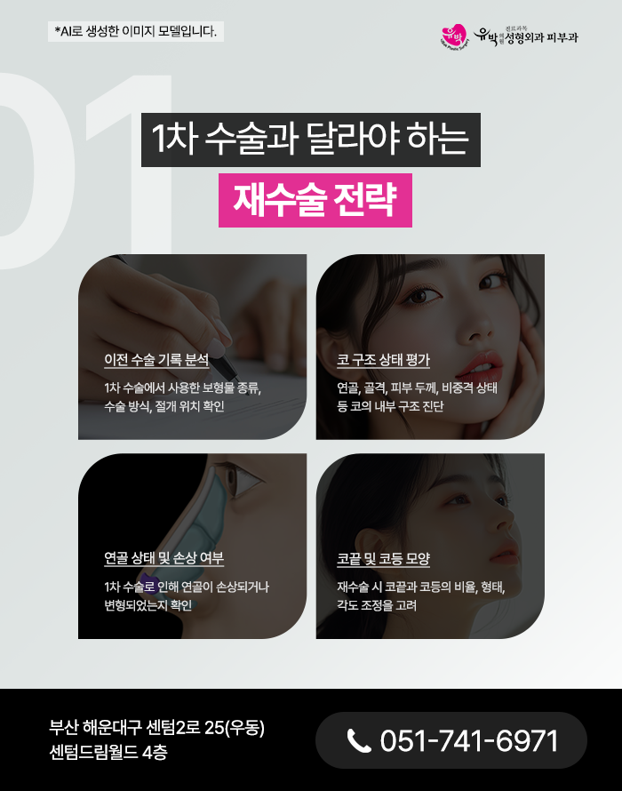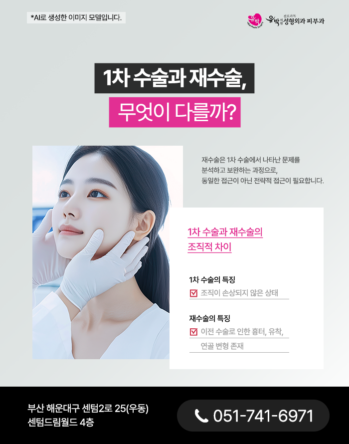 해운대코재수술은 단순히 이전 수술을 반복하는 것이 아니라 1차수술에서 발생했던 문제점과 한계를 분석하고 그에 맞춰 전략을 새롭게 세우는 과정을 의미합니다. 1차 수술과 동일한 방식이나 접근법을 반복하면 조직손상, 흉터, 피부 얇음 등으로 인해 불만족스러운 결과를 도출할 수도 있습니다