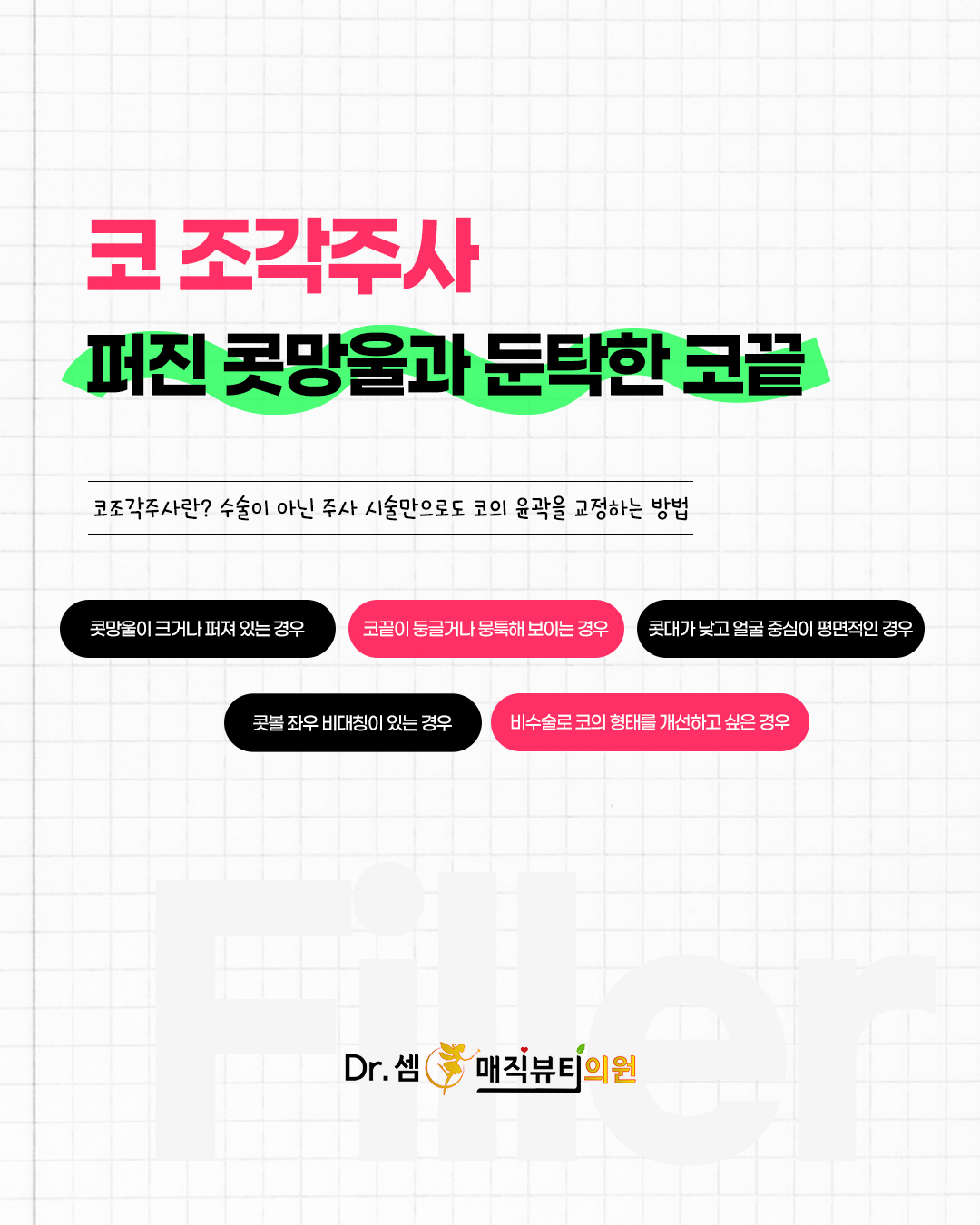 코는 얼굴의 중심에 위치해 있어 전체적인 인상을 결정하는 중요한 부위입니다. 콧대의 높이, 코끝의 형태, 콧볼의 넓이 등은 얼굴의 입체감과 균형에 직접적인 영향을 미칩니다....